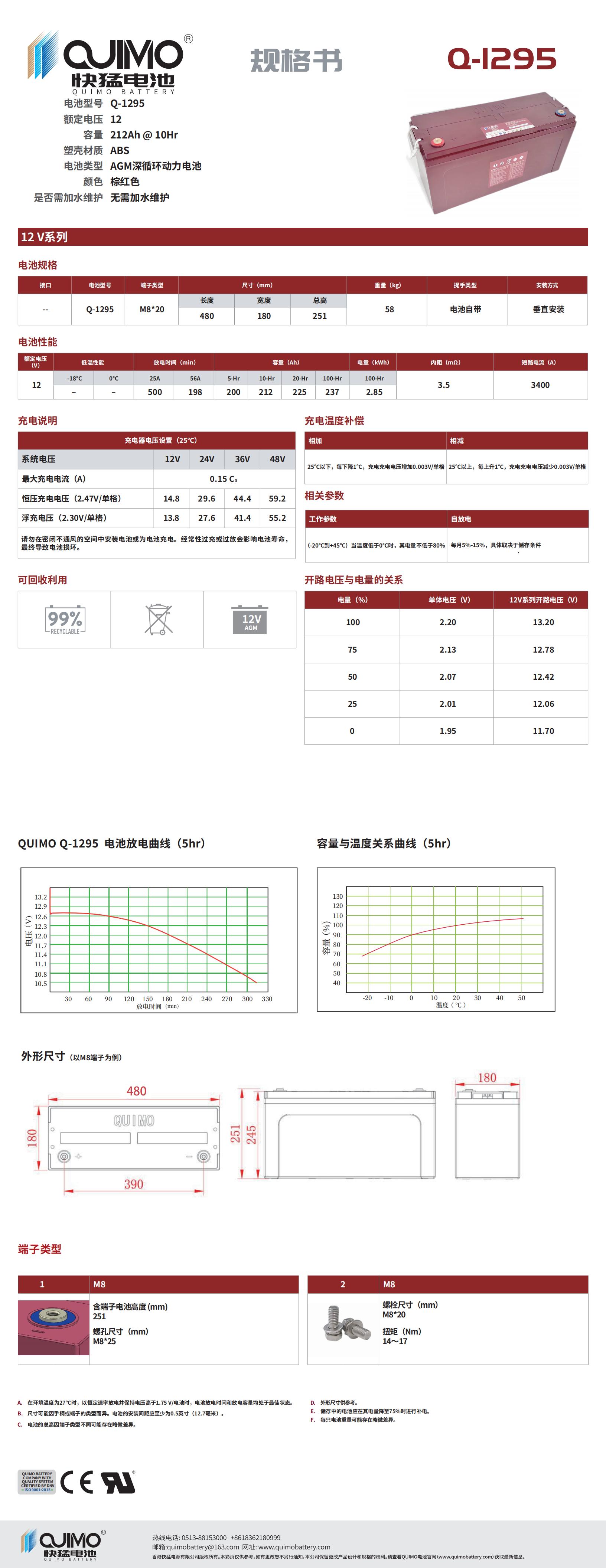 QUIMO登高車用閥控式鉛酸蓄電池Q-1295