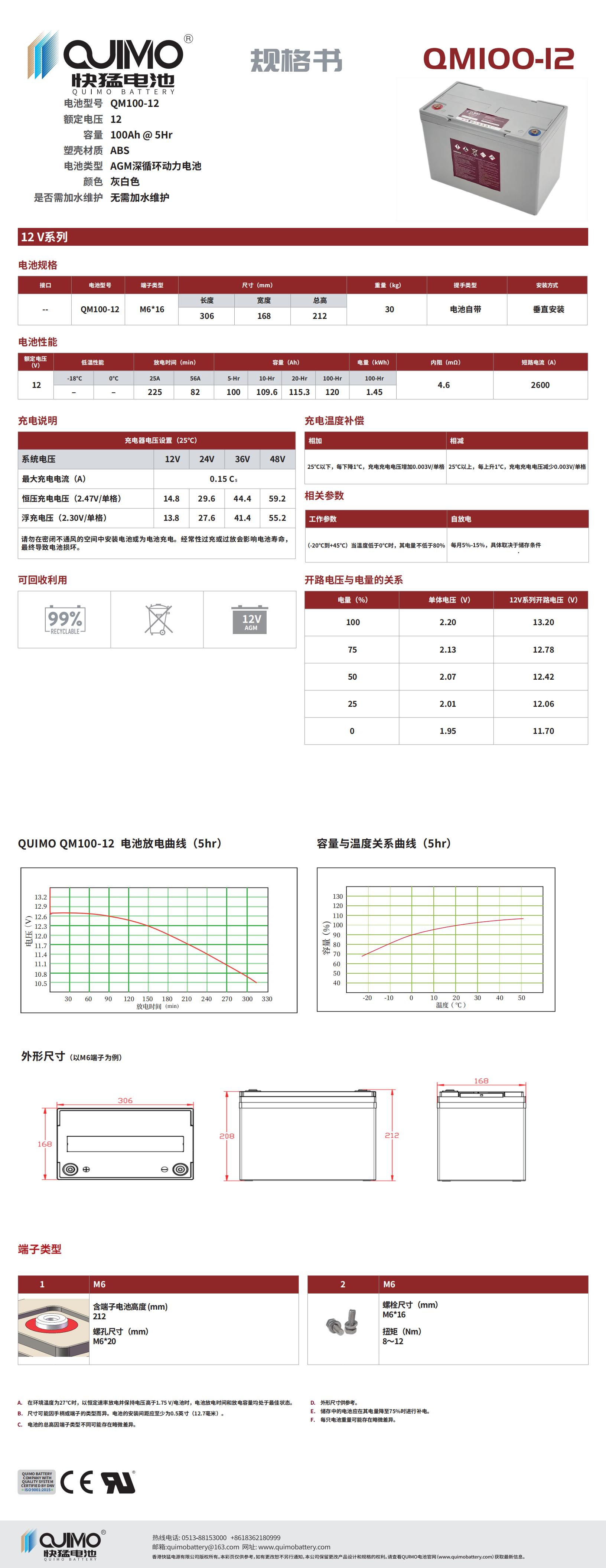 QUIMO登高車用閥控式鉛酸蓄電池QM-100